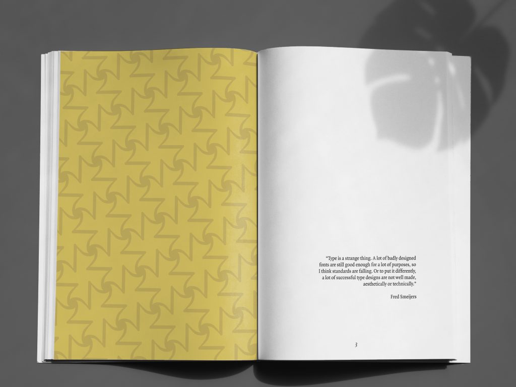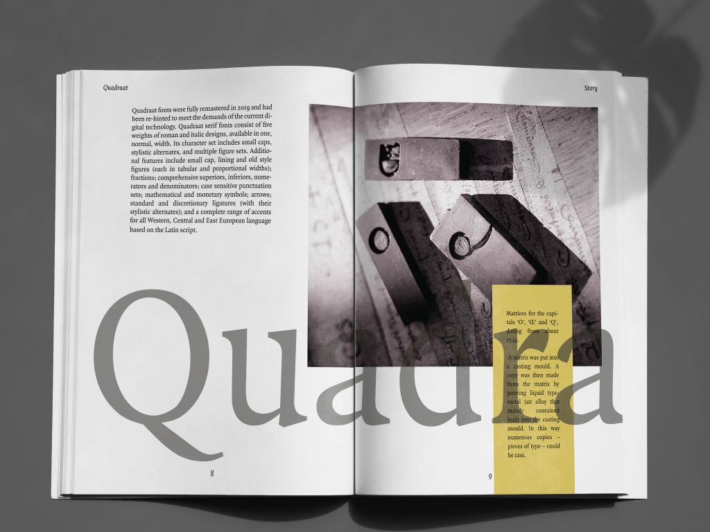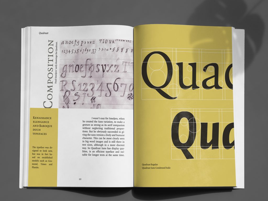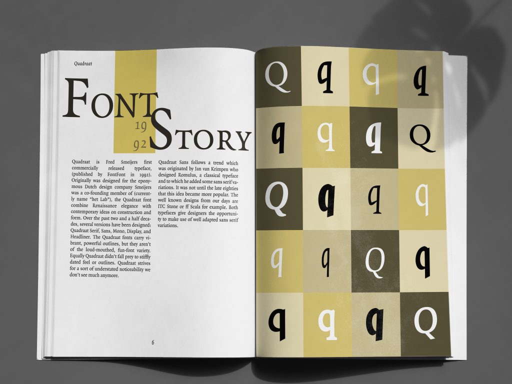 Quadraat Font Project is a booklet of 16 pages where you can find information about this font explained with graphic content.
