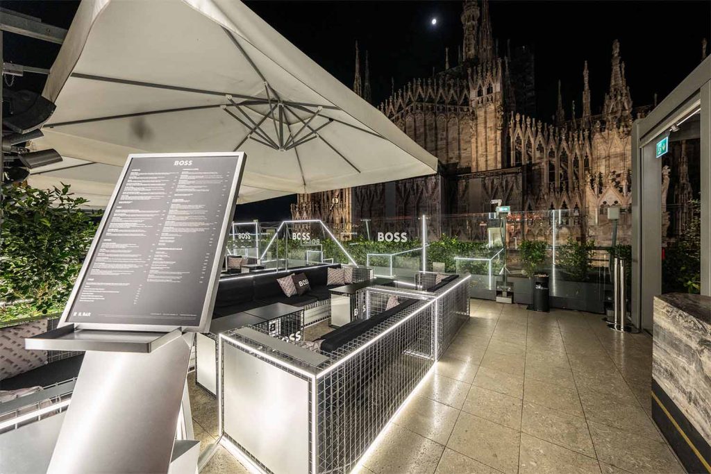We also prepare everything to be perfect for Boss’ pre-fashion-show party where all the people invited had the opportunity to enjoy the magnificent Terrazza Rinascente branded by Boss.