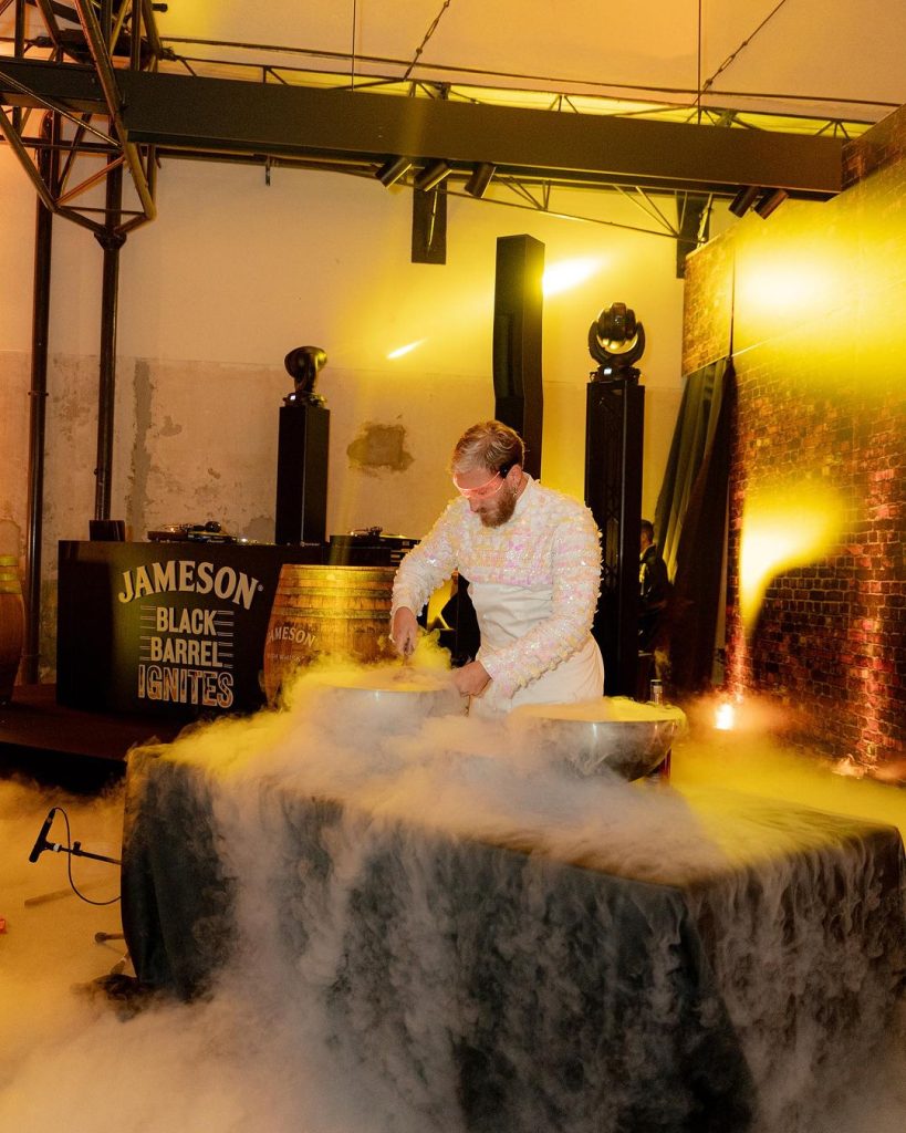 The guests could enjoy the incredible performance of Marco Assagia accompanied by the rhythms of Damate Drummer and take home as a gift a lithograph made live and specially designed for the occasion.