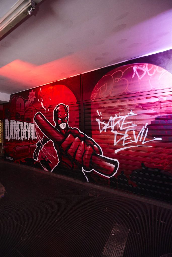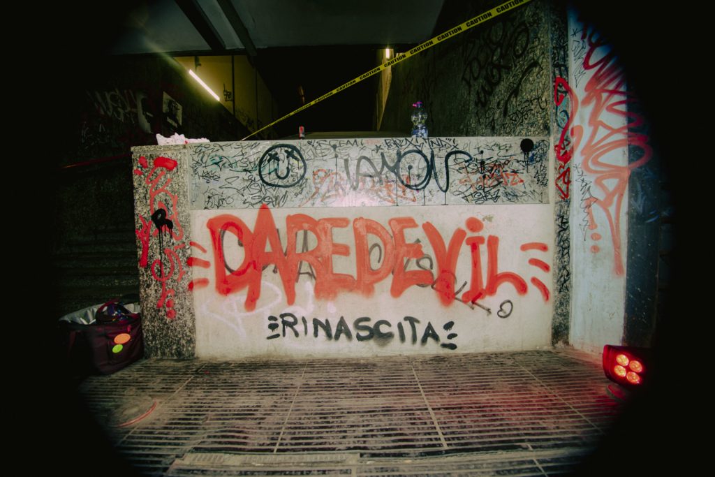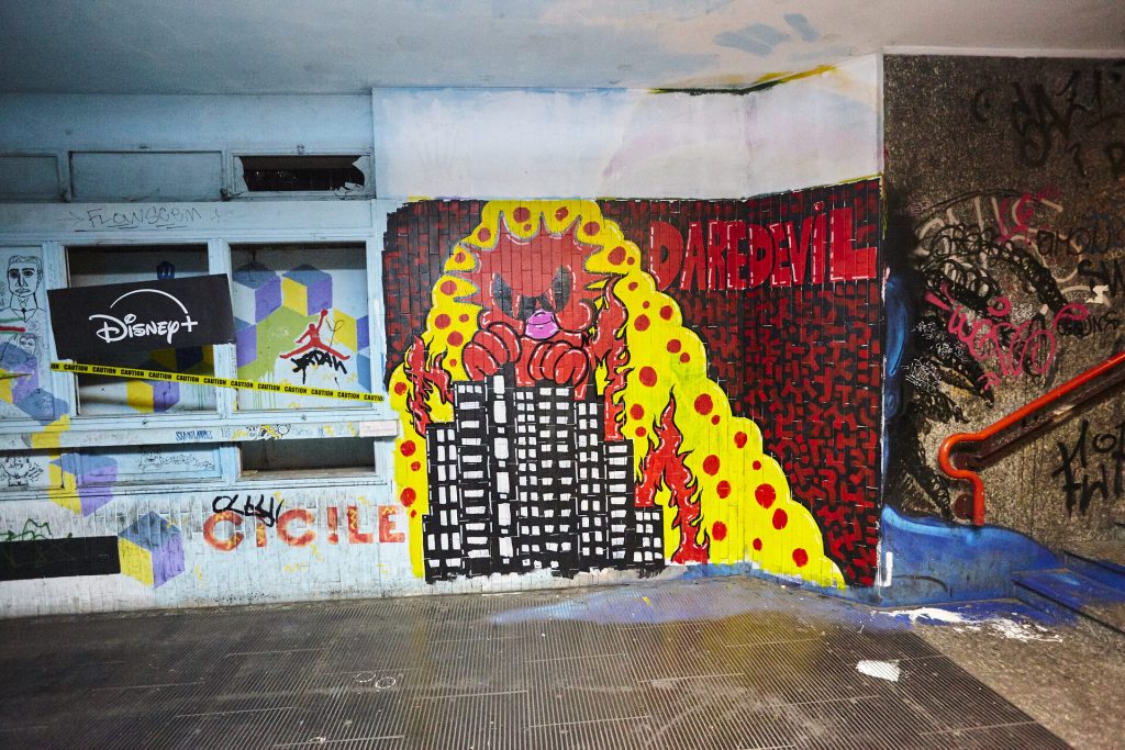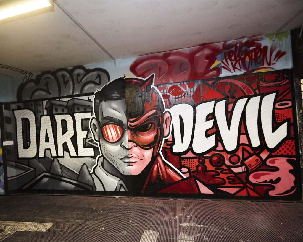 A secret tunnel. Raw street art. The underground roars for the new season of Daredevil.