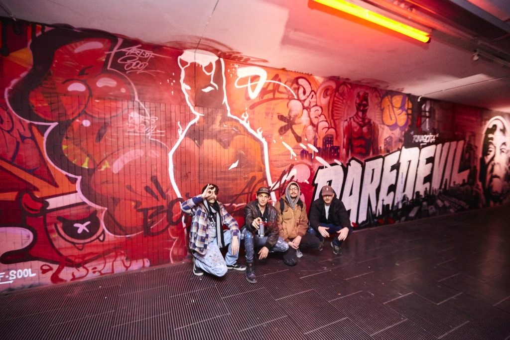 Art direction dives raw and unfiltered into Milan’s underground: walls dripping with paint, red lights pulsing like veins, and the thick scent of concrete and adrenaline. Here, our artists don’t just create, they fight. The Art of Sool crew, HandJobberz duo, Filippo Tincolini and Davide Vavala slash through darkness with color, set shadows ablaze with installations that scream louder than words.